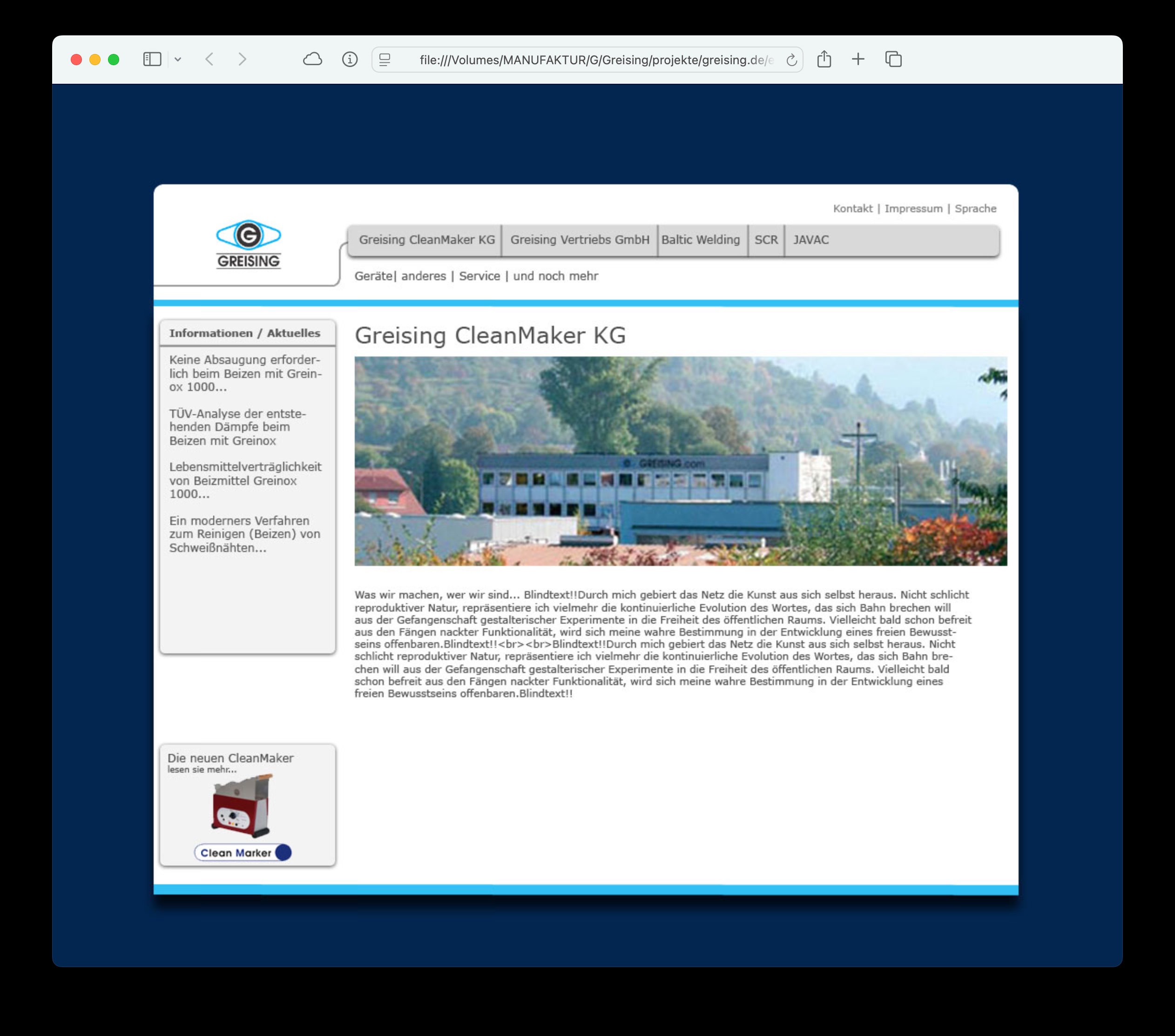 Das Augenmerk war gerichtet auf den Webauftritt der Firma Greising. Für den russisch sprechenden Markt wurde eine eigene Webpräsenz entwickelt, die JAVAC Deutschland erreichbar sein sollte. Für den Online Verkauf entstand power-pick. Als CMS-System kam Contenido zum Einsatz. Für den Webshop wurde osCommerce verwendet.